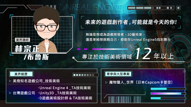 • 布魯斯老師擁有豐富的國內外大廠遊戲產業經驗,能提供實戰觀點/li>